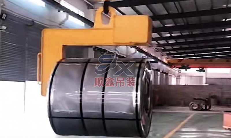 翻轉(zhuǎn)吊具通過機(jī)械剪力原理,對立式擺放的卷鋼進(jìn)行單邊抓取,來完成卷鋼的裝卸,當(dāng)改變重力點時,可以對卷鋼進(jìn)行翻轉(zhuǎn),作業(yè)時不傷鋼卷。其吊耳采用加厚處理,焊縫飽滿牢固、延長使用壽命。